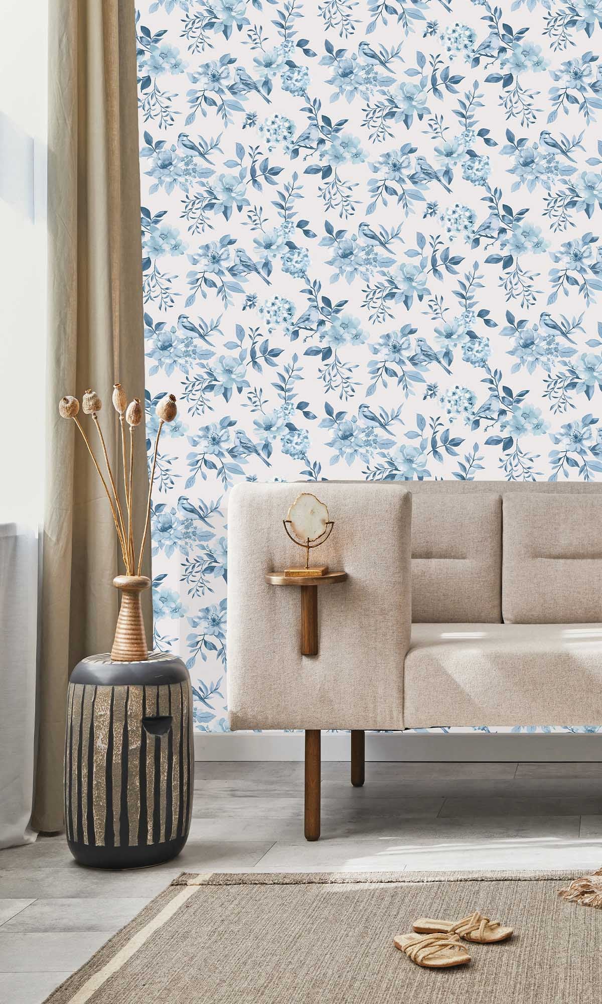 This Birds in a Garden wallpaper isn’t just some decoration—it’s like inviting your walls to host a secret garden gathering. Picture tiny birds chatting among the petals, flowers bursting with color as if they just can’t contain their excitement, all brought to life with a dreamy, artistic flair. The entire scene feels vibrant, as if you might actually see a petal drift down or a bird stretch its wings if you blink at just the right moment.