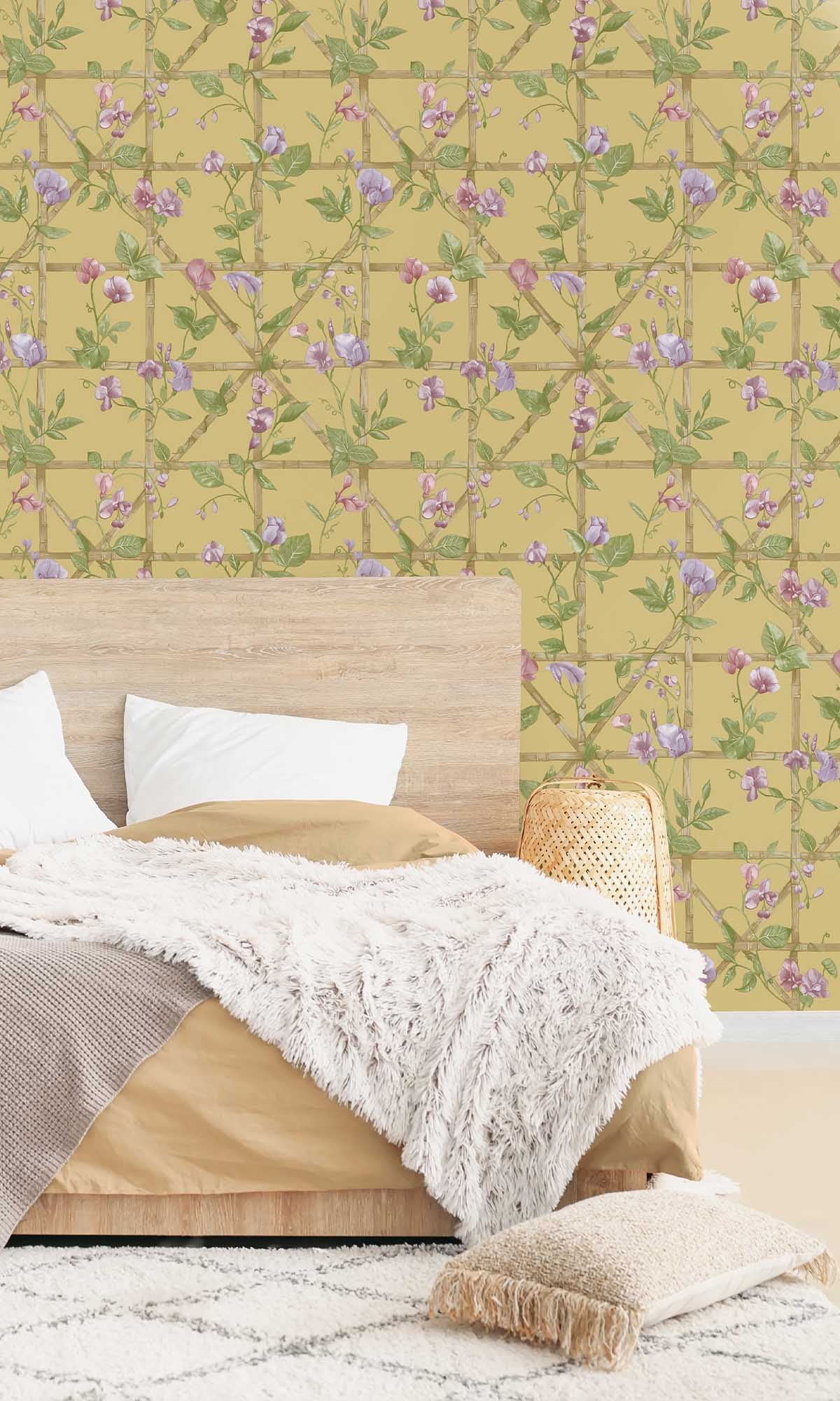 Give your walls an instant refresh with the Trailing Floral Vines Wallpaper. This design brings the charm of an English garden indoors—without the mud or buzzing bees. Featuring a delicate trellis with climbing sweetpeas, the soft, flowing vines and intricately detailed petals create a fresh, romantic, and effortlessly elegant look. Step inside, and your room feels alive, airy, and inviting.