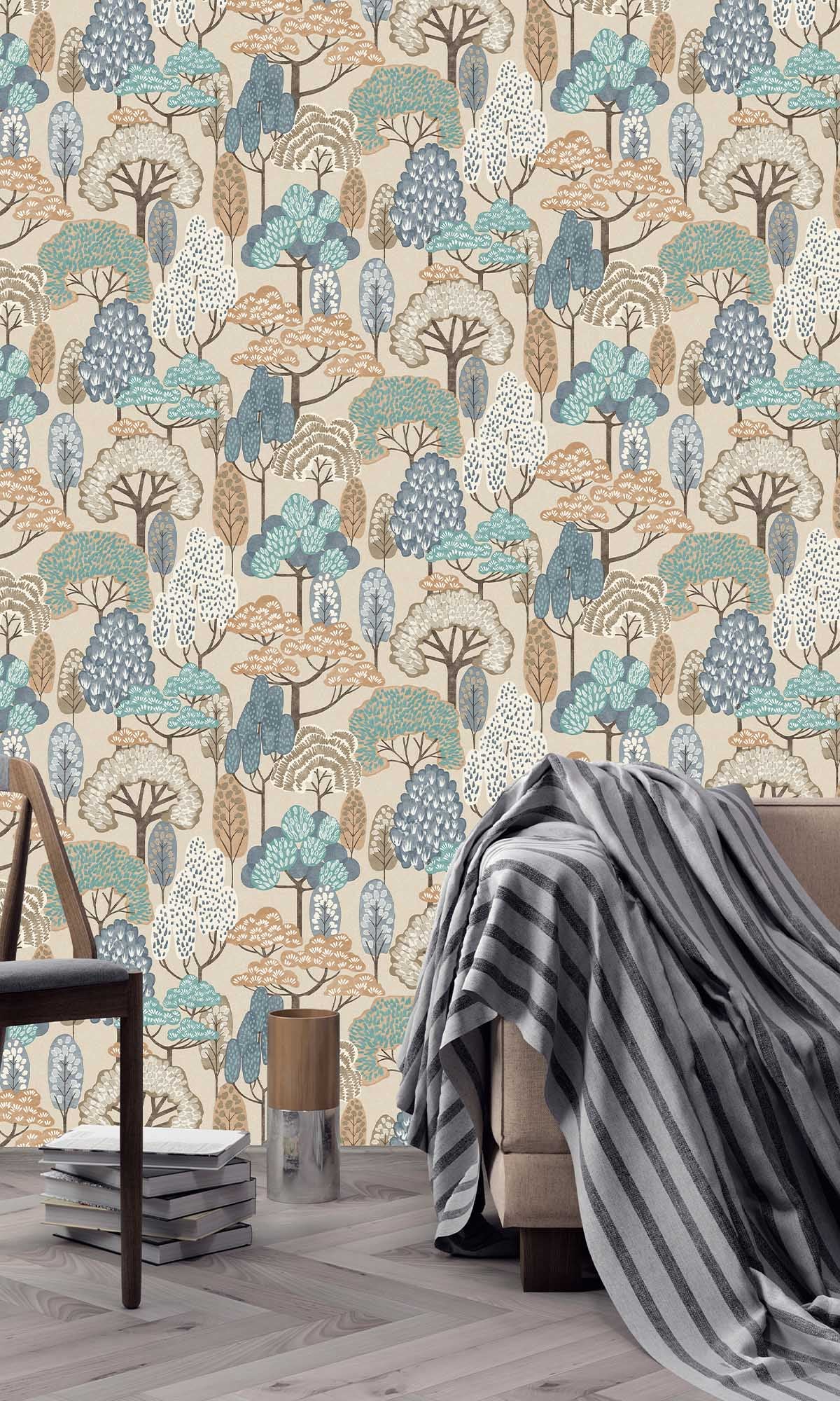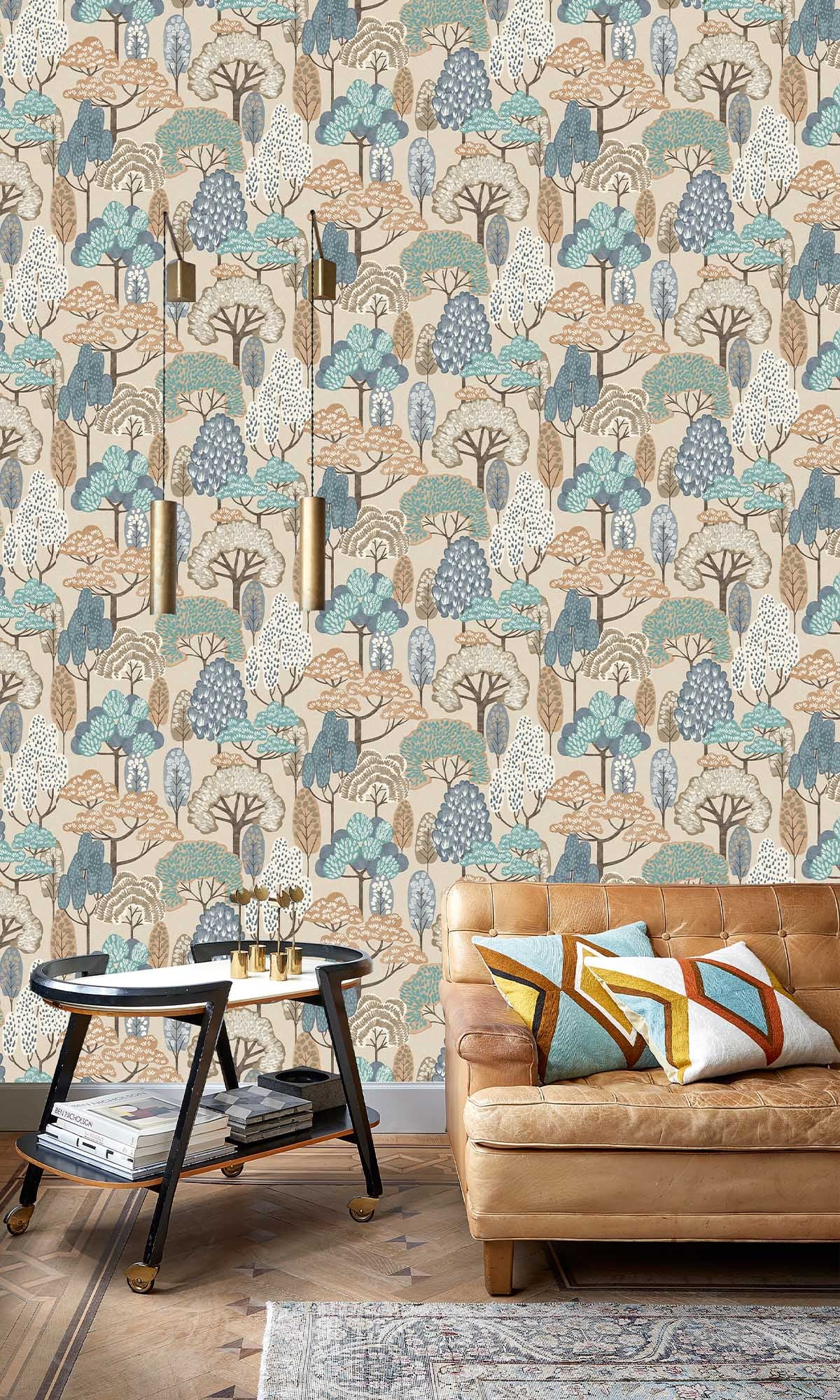 Transform your child's room into a serene, storybook haven with our Little Dreamers Happy Trees Wallpaper. This charming wallcovering is crafted to ignite imagination while keeping things calm and cozy. Featuring a delightful array of illustrated, stylized trees set against a soft, fairytale-like forest backdrop, it’s just right for creating a magical atmosphere.