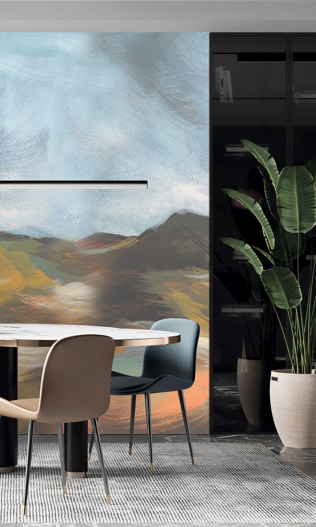 This Serenity Elevasion mural wallpaper isn’t just a piece of art; it’s like a splash of watercolor poetry on your walls. You’ll find these dreamy, layered peaks and a soft, atmospheric flow that almost makes you forget you’re inside.