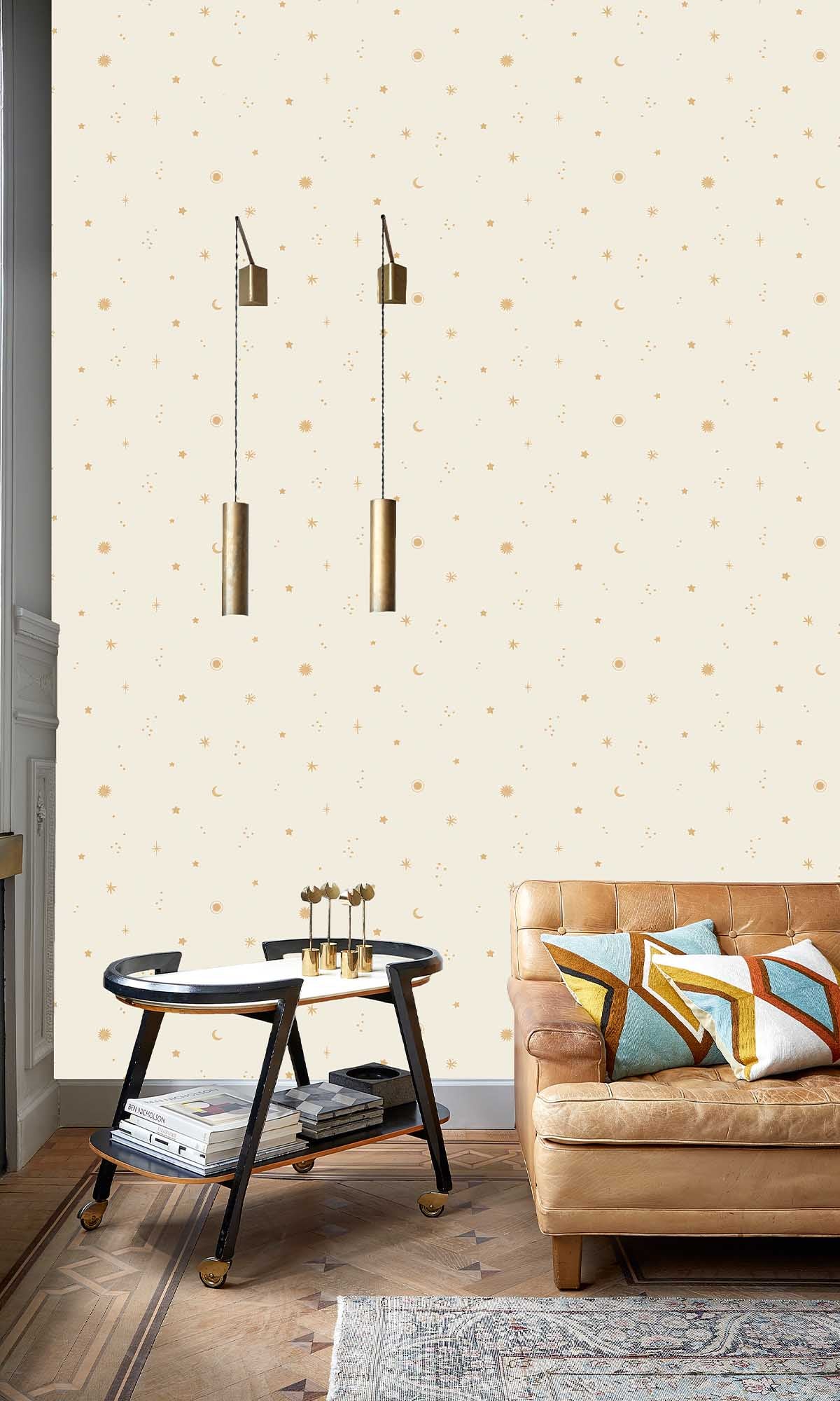 If you want to kick it up a notch, some versions of this wallpaper come with metallic ink. When the light hits just right? Those stars shimmer as if they’re dancing. Seriously, it’s not over the top; it’s just that subtle sparkle that brings the whole wall to life. The vibe is playful yet super relaxed—imagine bedtime stories instead of a sugar-fueled frenzy.