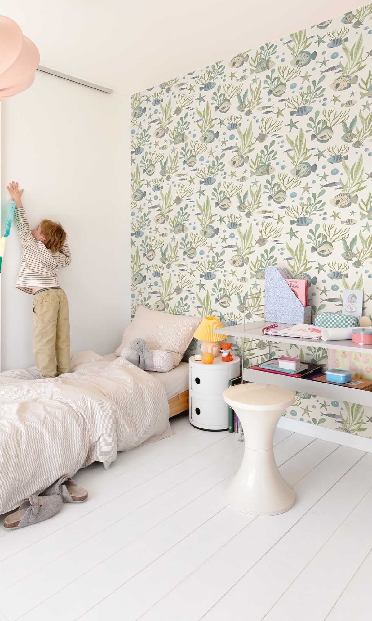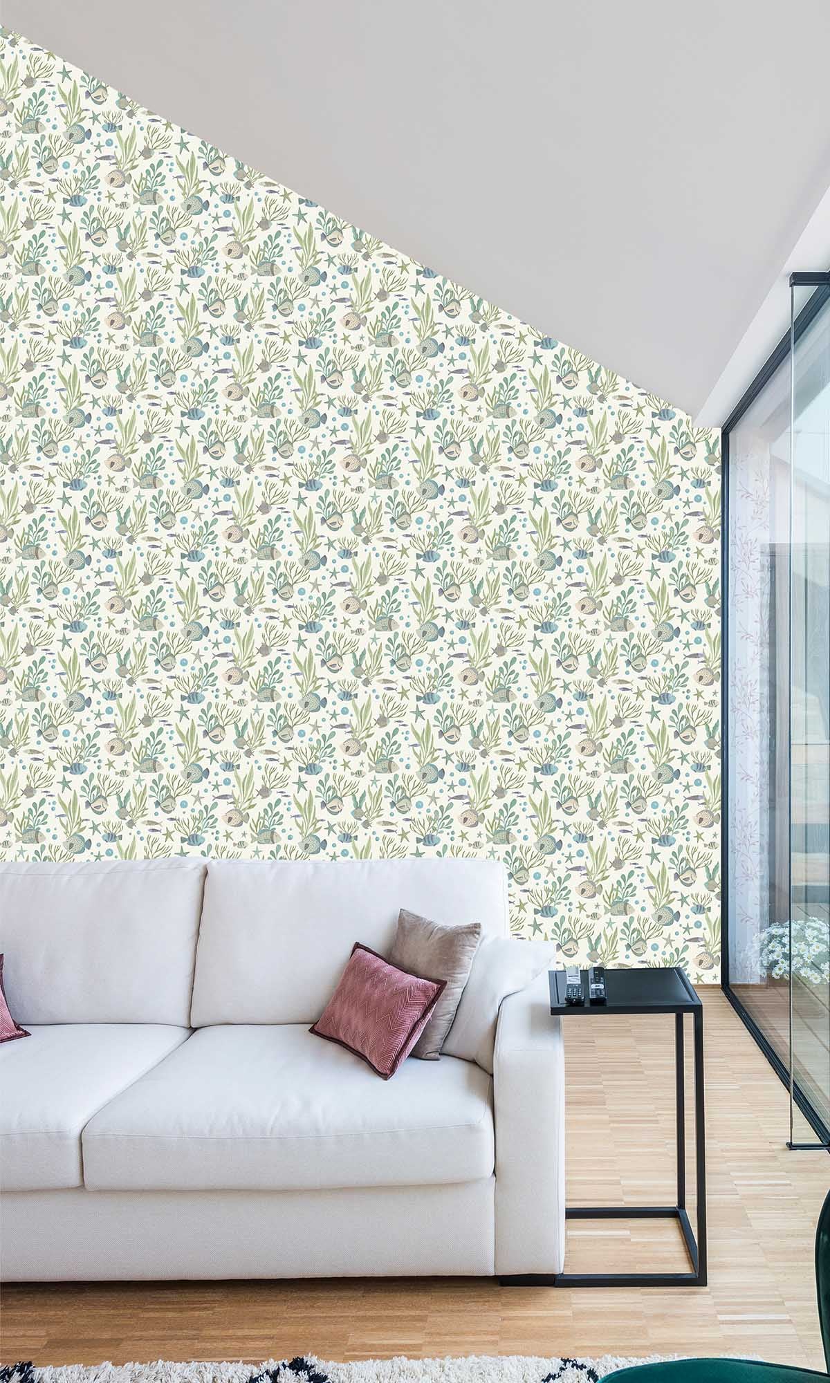 Whether you're sprucing up a nursery, a toddler's room, or an ocean-themed play area, this Underwater Scene Wallpaper adds a delightful splash of underwater magic to any child's space. It's a calming, imaginative choice that fits beautifully with modern, Scandinavian, or minimalist décor styles.
