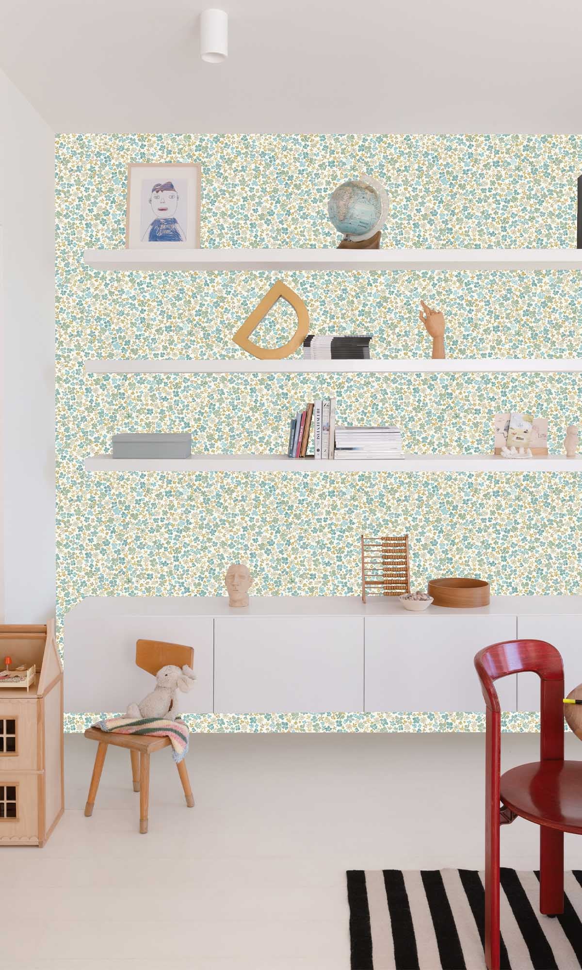 Add timeless beauty into your home with our Little Dreamers Veronica Wallpaper, a soft and charming wallcovering inspired by retro, mid-century floral prints. This elegant design features a delicate, repeating pattern of chrysanthemums and phlox, intertwined with leaf-dense details that create a naturally full and beautifully layered look. The flowers are small, scattered, and organically placed, giving the wallpaper an authentic ditsy-style appeal.