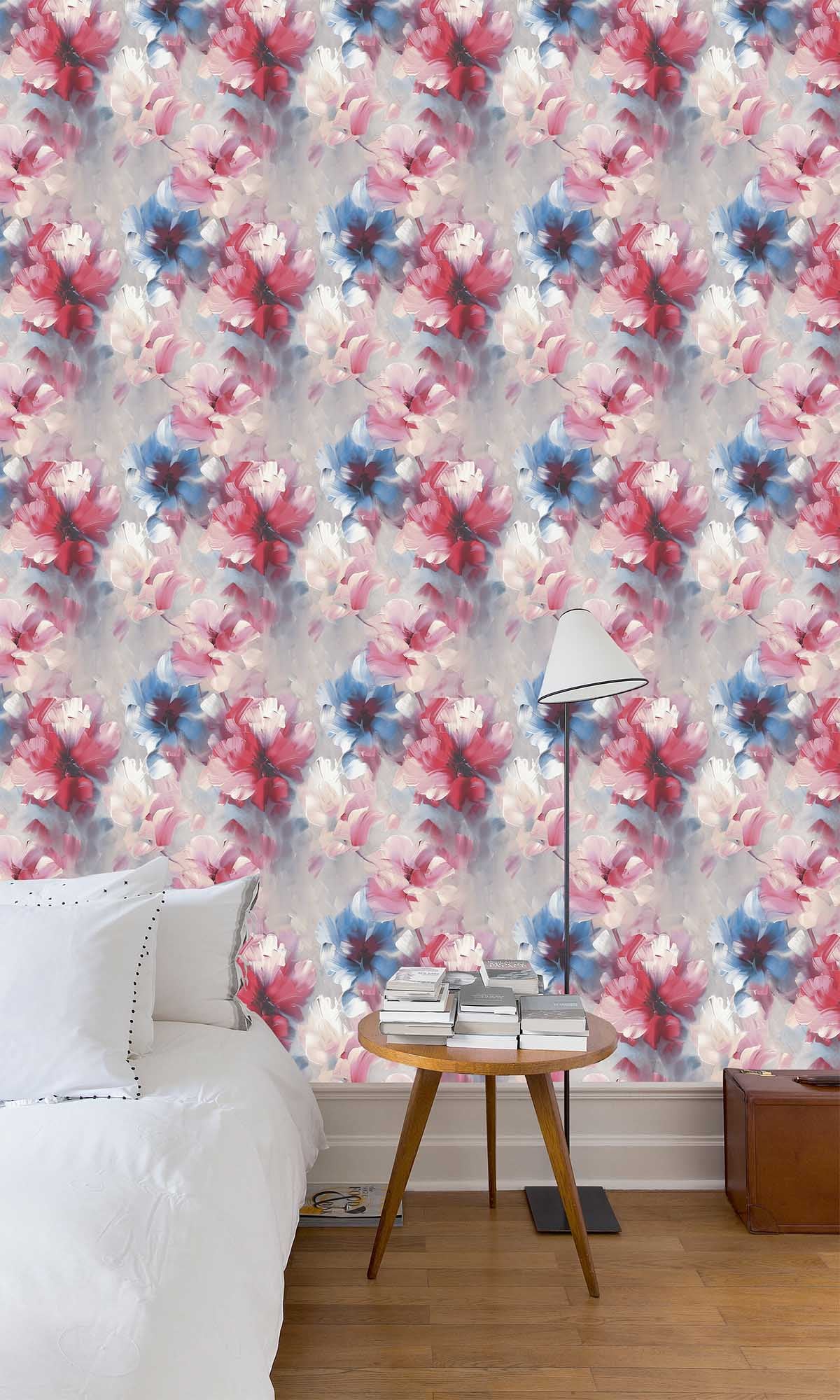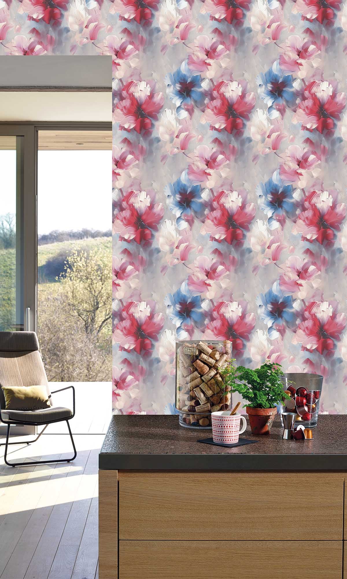 Do you want to add some serious attitude to your walls?  With the exception of the trouble of cleaning up real paint splatters, this Very Diana Wallpaper is essentially like hanging a massive, artistic mood on your wall.  Big, dramatic flowers in wild fuchsia and moody blue just scream, “Look at me! And to be honest, who doesn't want a conversation-starting living room?