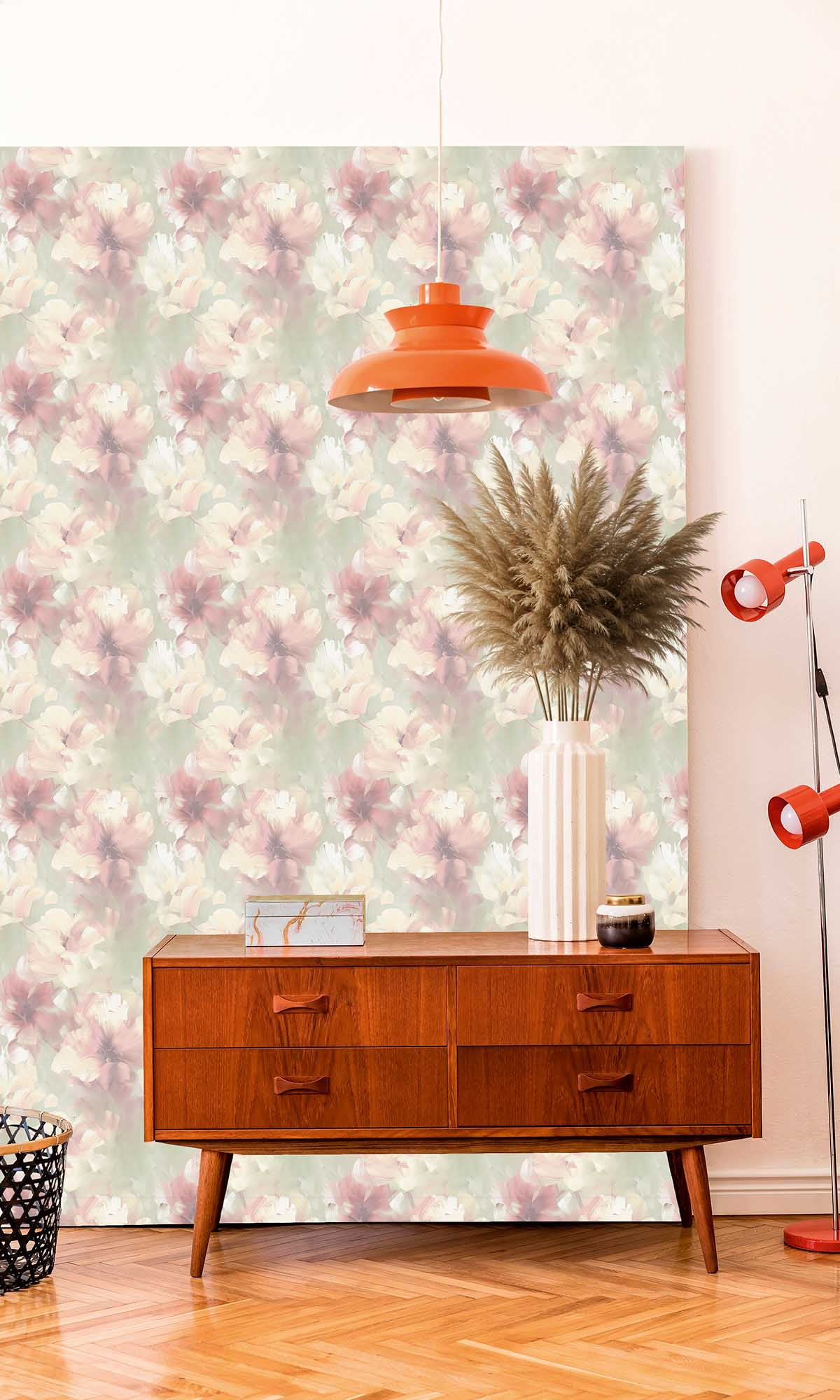 Do you want to add some serious attitude to your walls?  With the exception of the trouble of cleaning up real paint splatters, this Very Diana Wallpaper is essentially like hanging a massive, artistic mood on your wall.  Big, dramatic flowers in wild fuchsia and moody blue just scream, “Look at me! And to be honest, who doesn't want a conversation-starting living room?