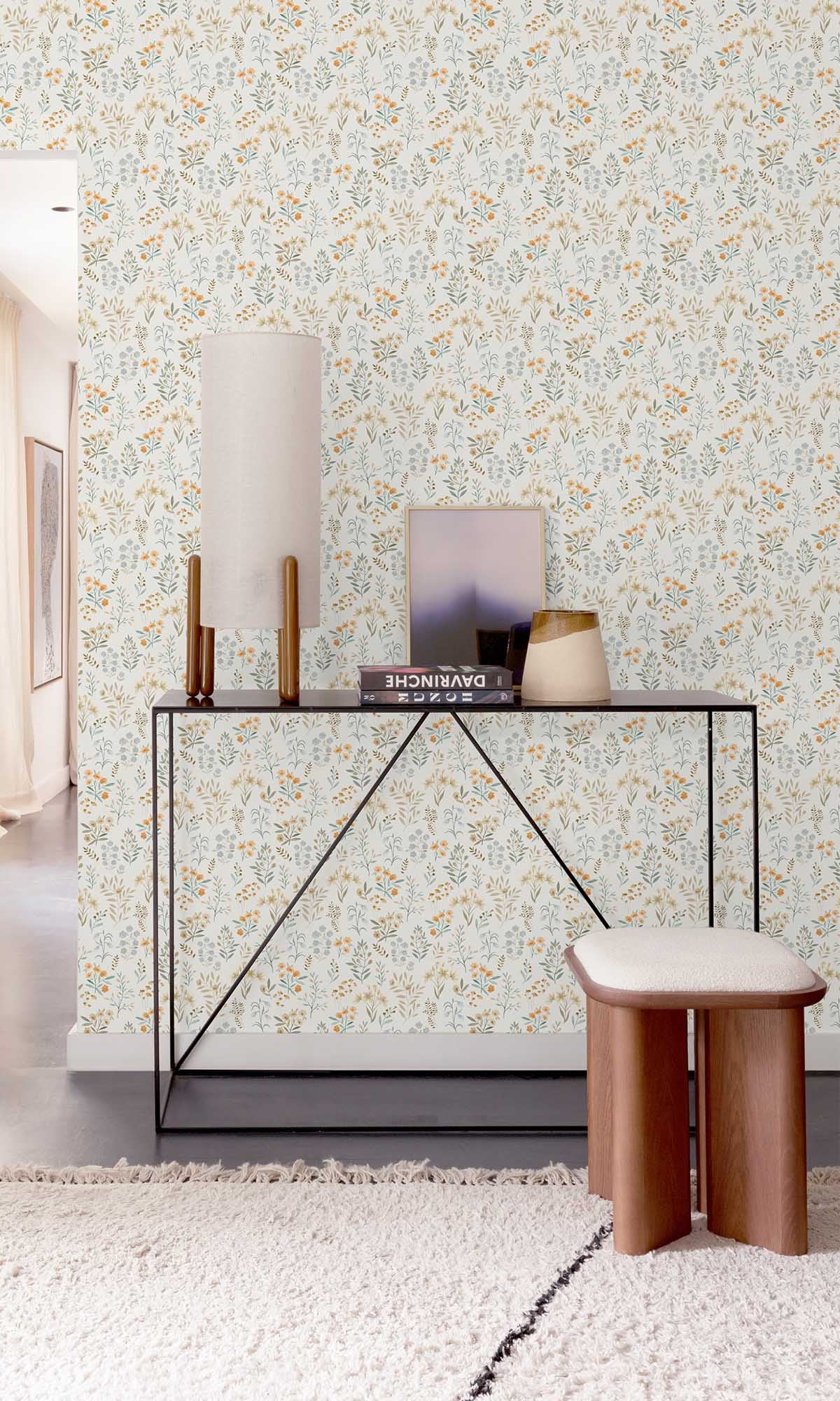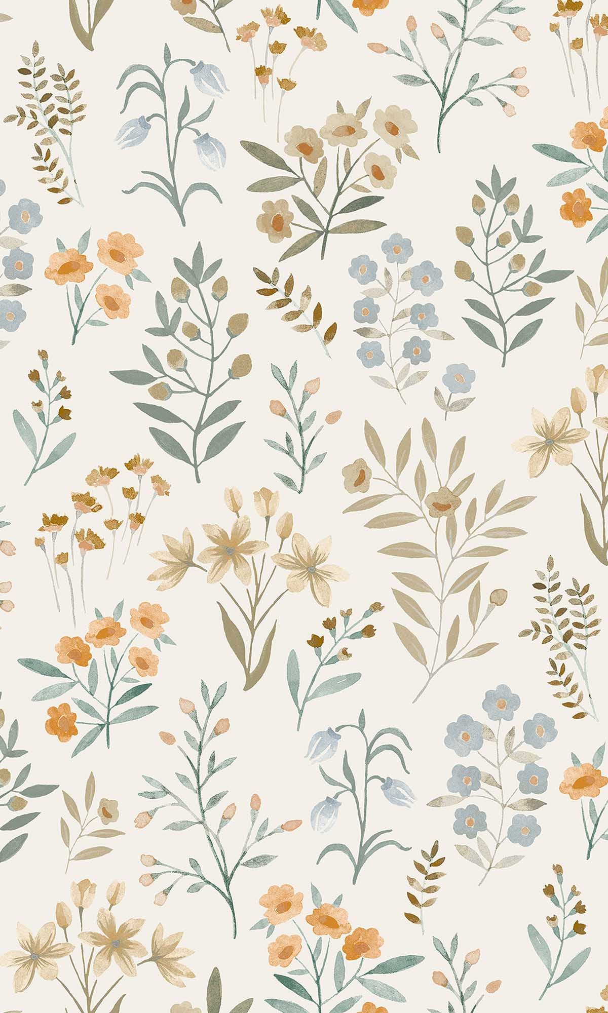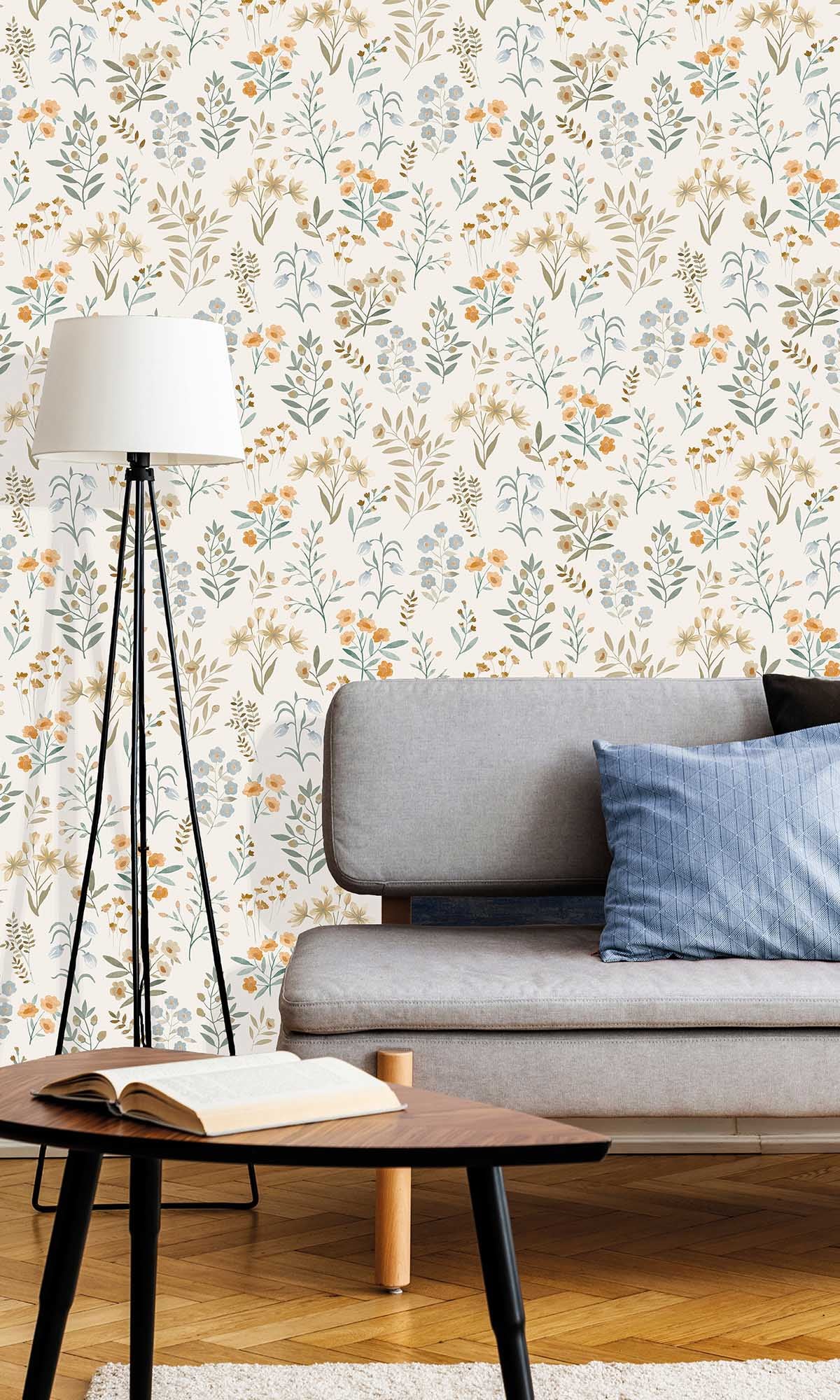 Use our Inia Placed Posey Wallpaper to add a little artistic flair to your room. This is a celebration of hand-painted flowers that adds genuine warmth and individuality to your house; it's not just any wall covering. Whether your style is modern or a little more conventional, the poppy design blends gentle tones of grey, olive, honey, and peach to make your walls feel warm and inviting.
