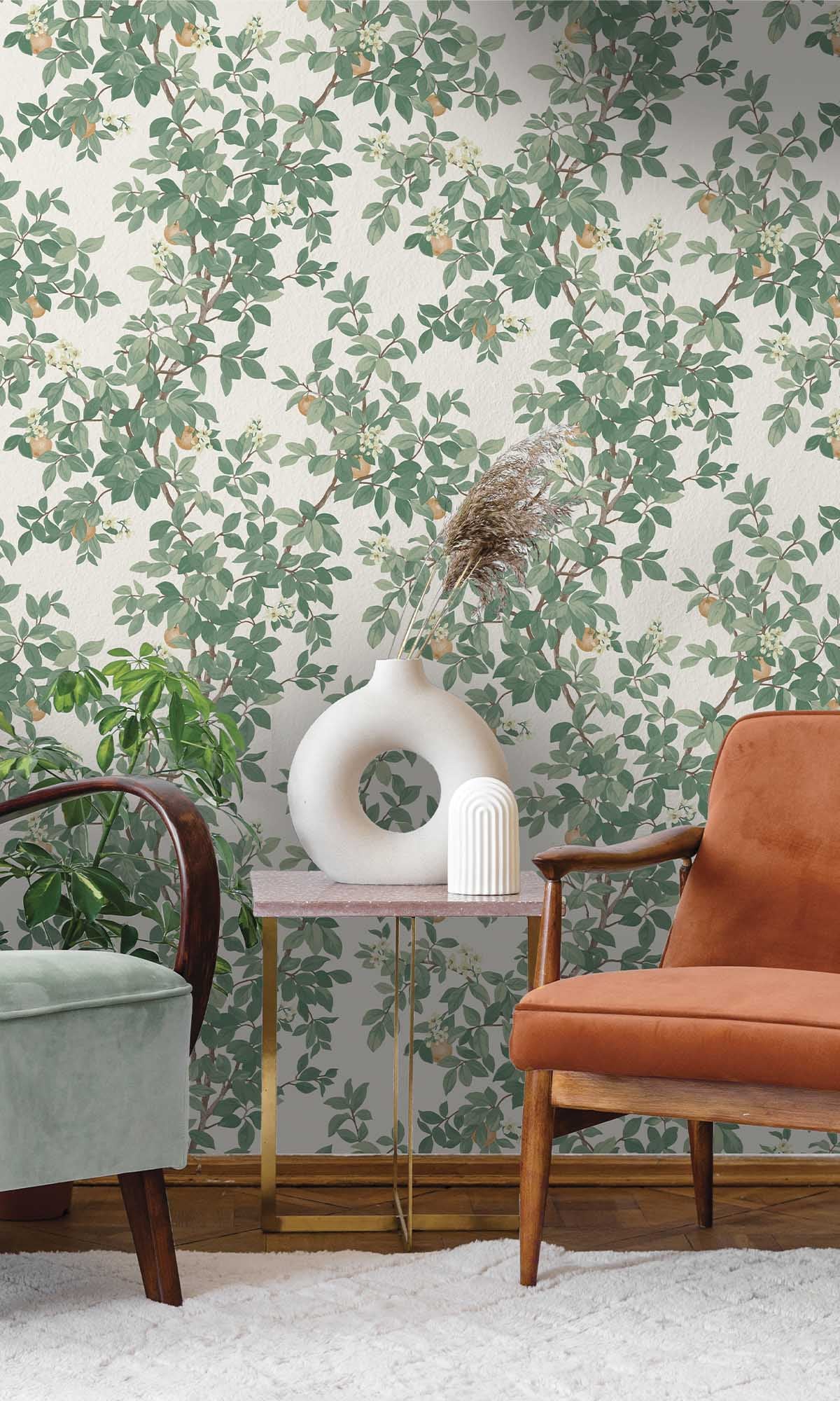 Installation and maintenance are simple: it’s Paste the Paper for easy hanging, Good Lightfast to preserve vibrant colors, Wet Removable for easy updates, and Washable for quick clean-ups. The Blooming Orange Tree Wallpaper is a fuss-free way to infuse your home with sunny, botanical elegance.