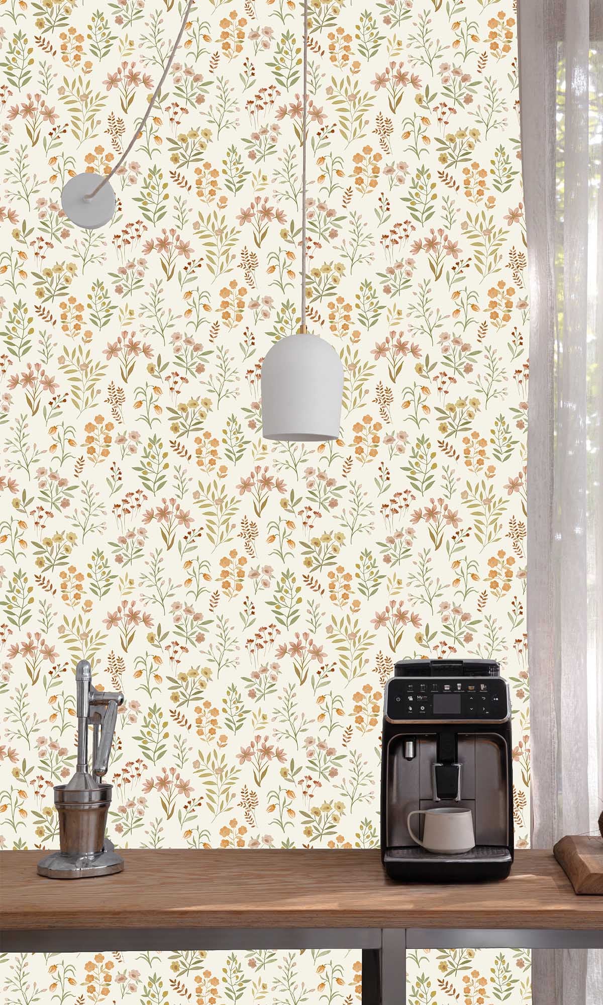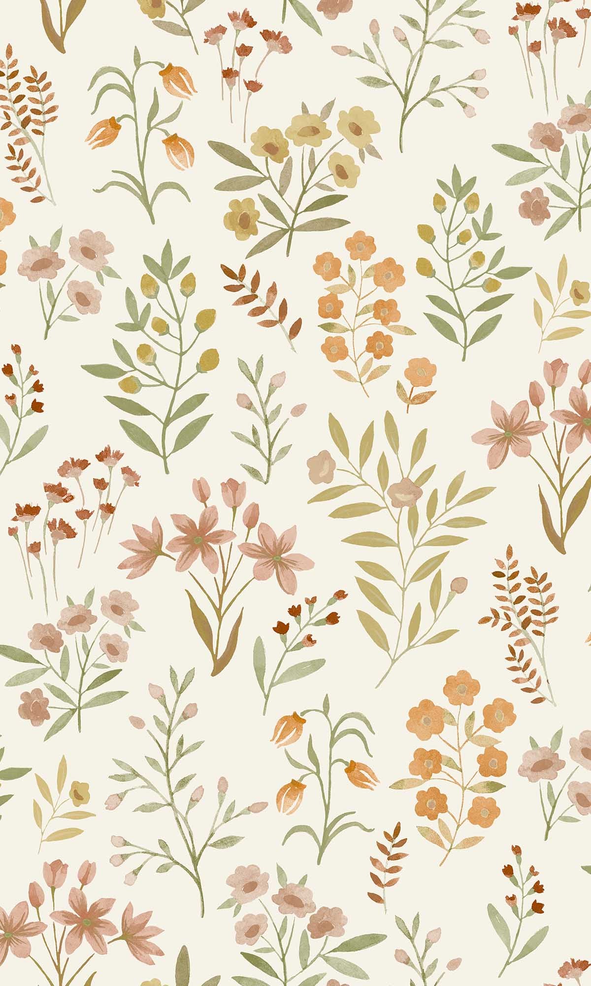 Use our Inia Placed Posey Wallpaper to add a little artistic flair to your room. This is a celebration of hand-painted flowers that adds genuine warmth and individuality to your house; it's not just any wall covering. Whether your style is modern or a little more conventional, the poppy design blends gentle tones of grey, olive, honey, and peach to make your walls feel warm and inviting.