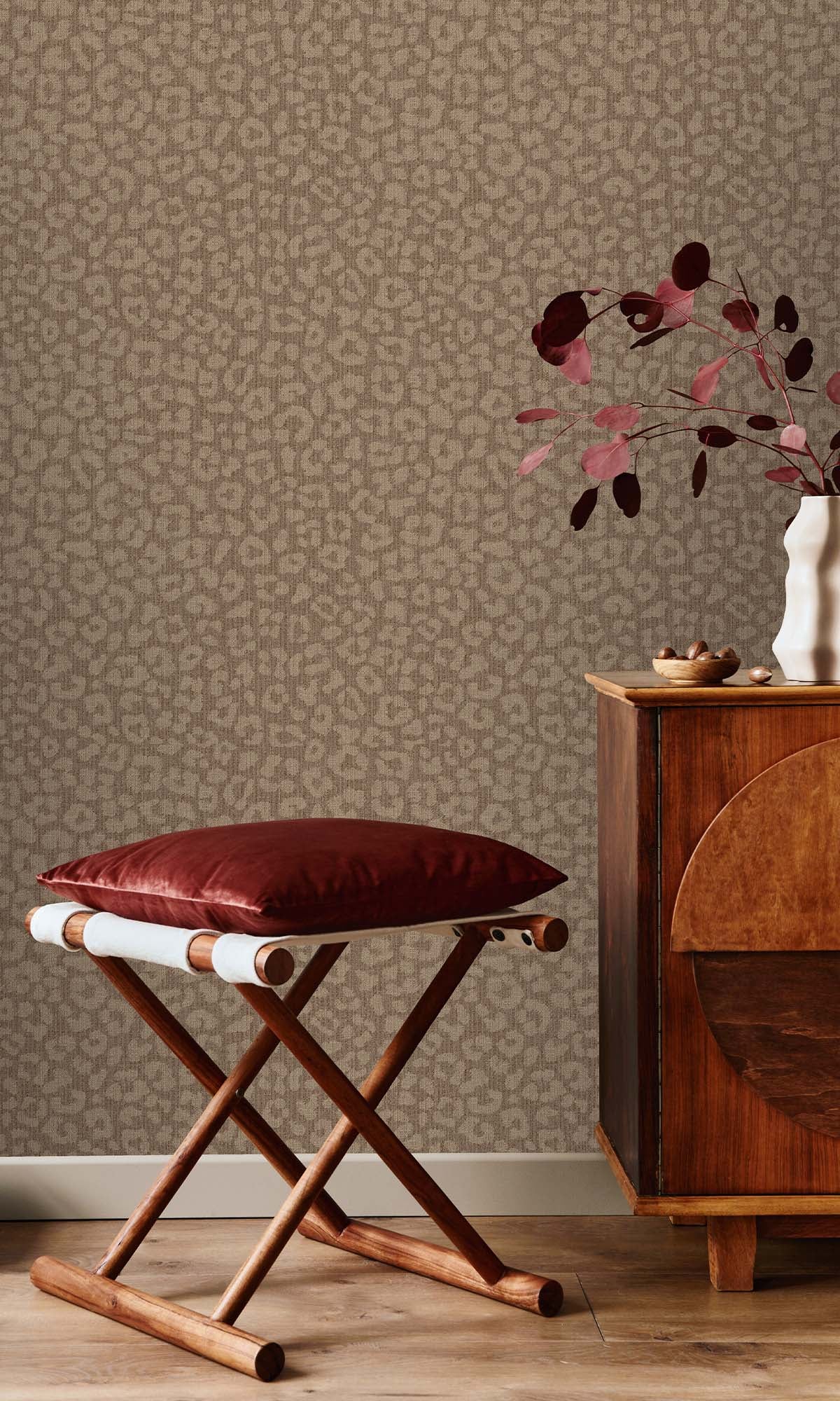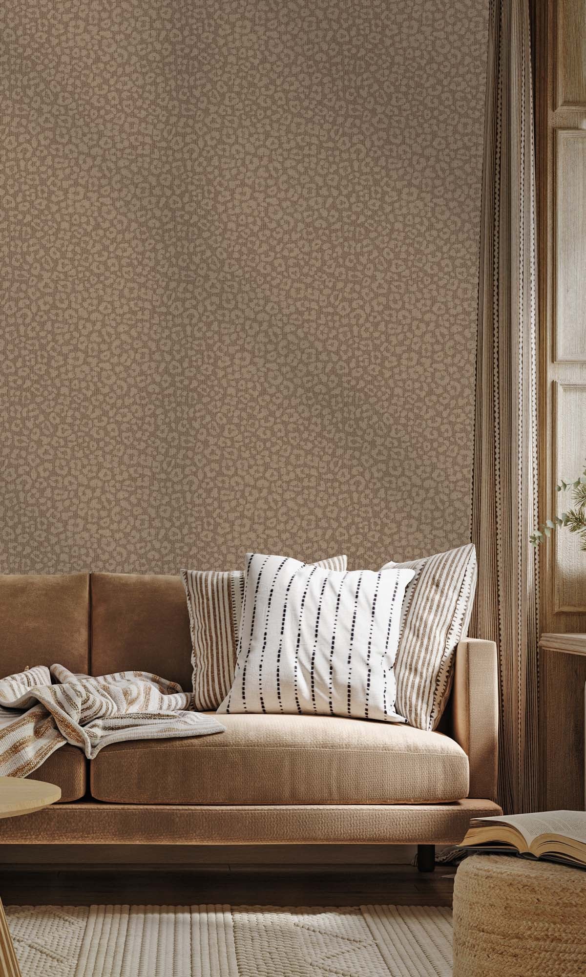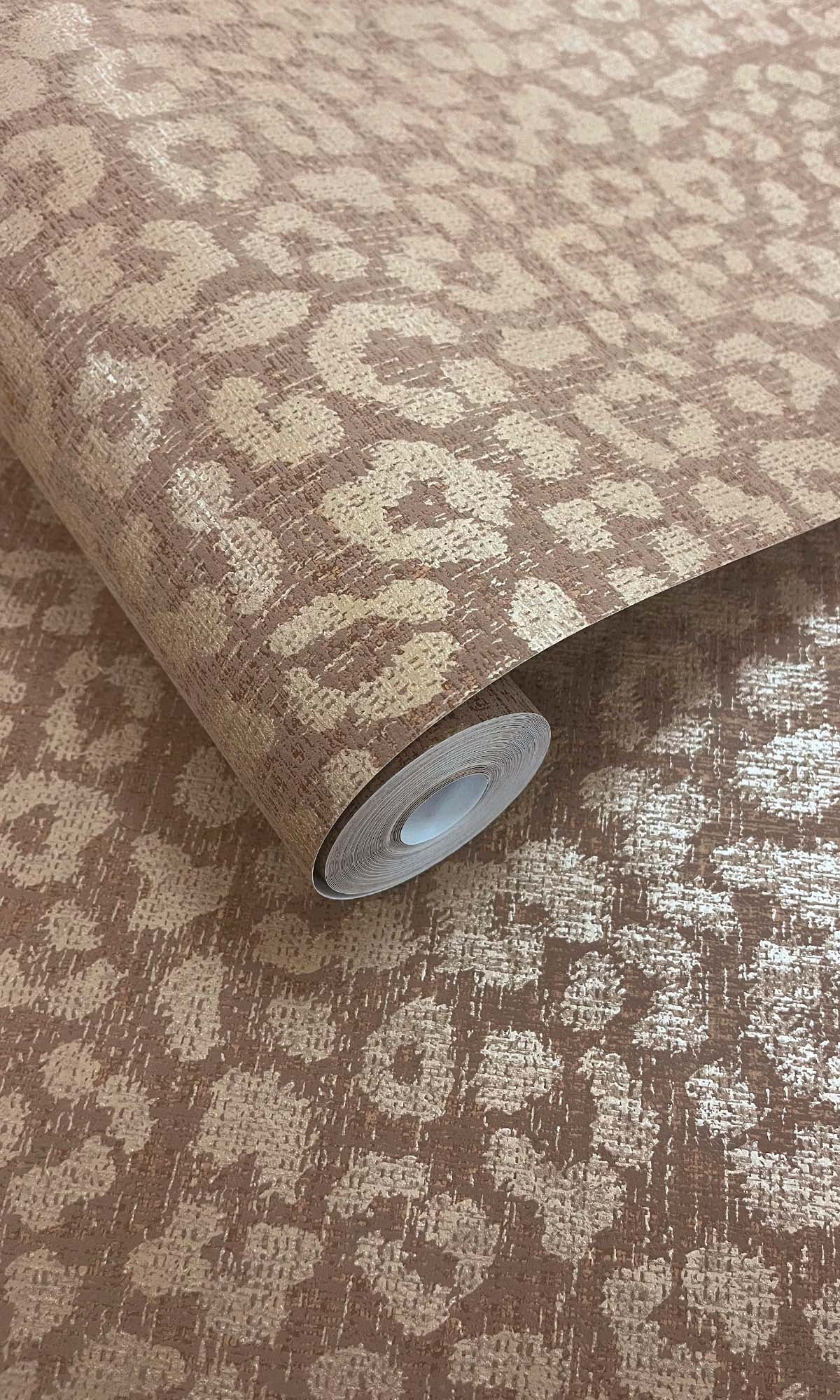 This wallpaper has a cool, textured feel with shiny leopard spots scattered across a raised base. You can actually feel the layers, which gives it a deep, almost 3D look. The metallic bits make it shimmer subtly.