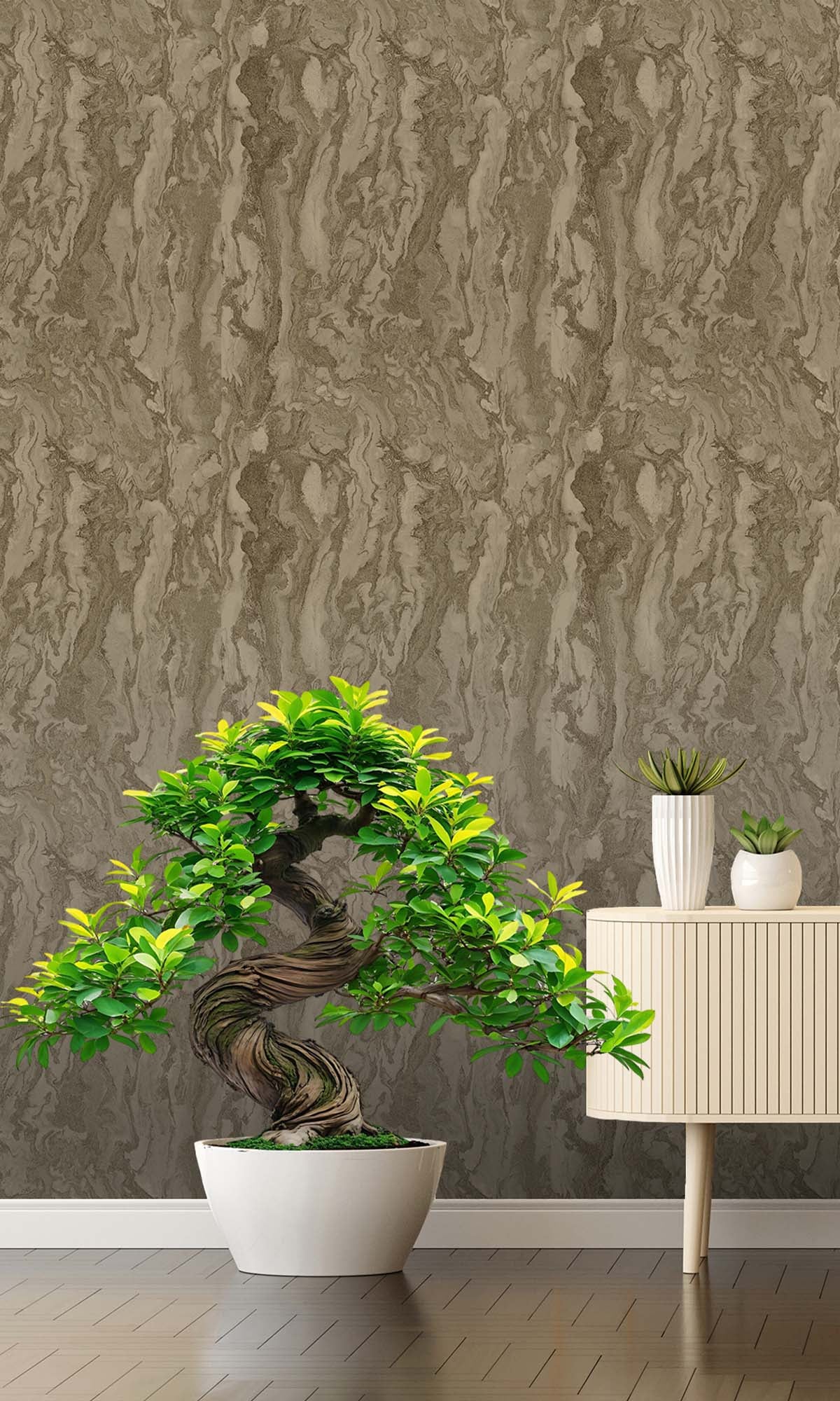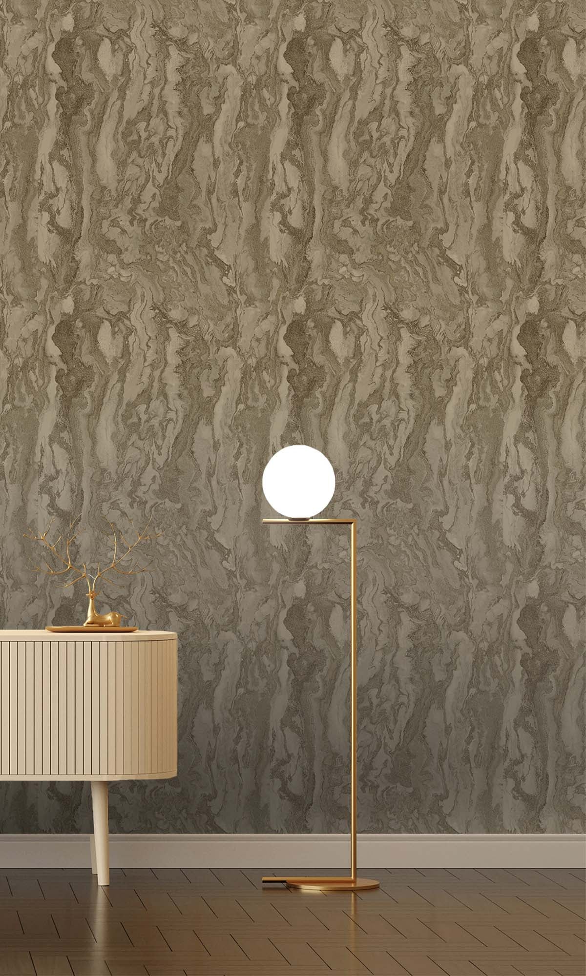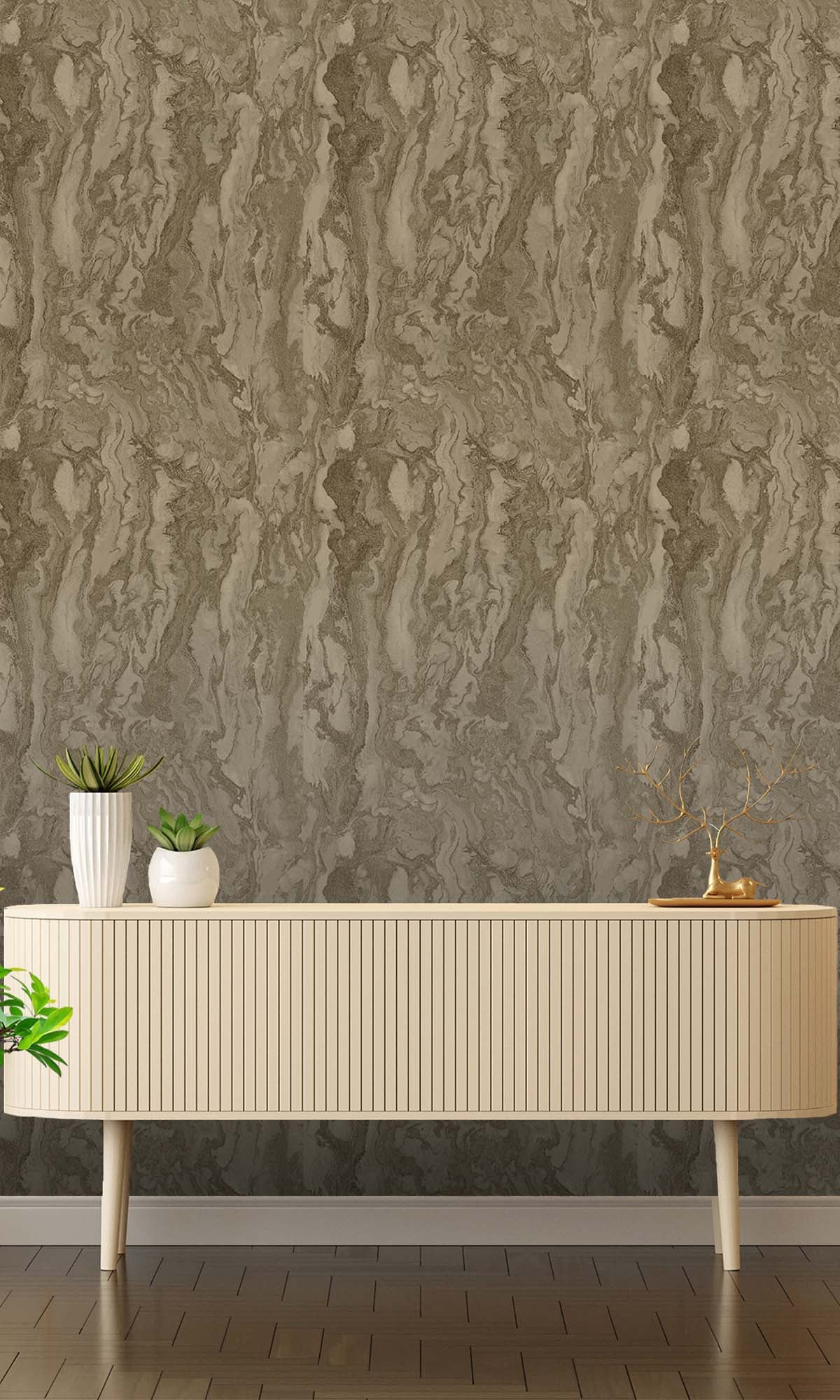 This cool wall covering looks like marble but with a twist. It's got these shiny metallic bits and a raised texture that feels good to the touch, all mixed into the stone pattern.