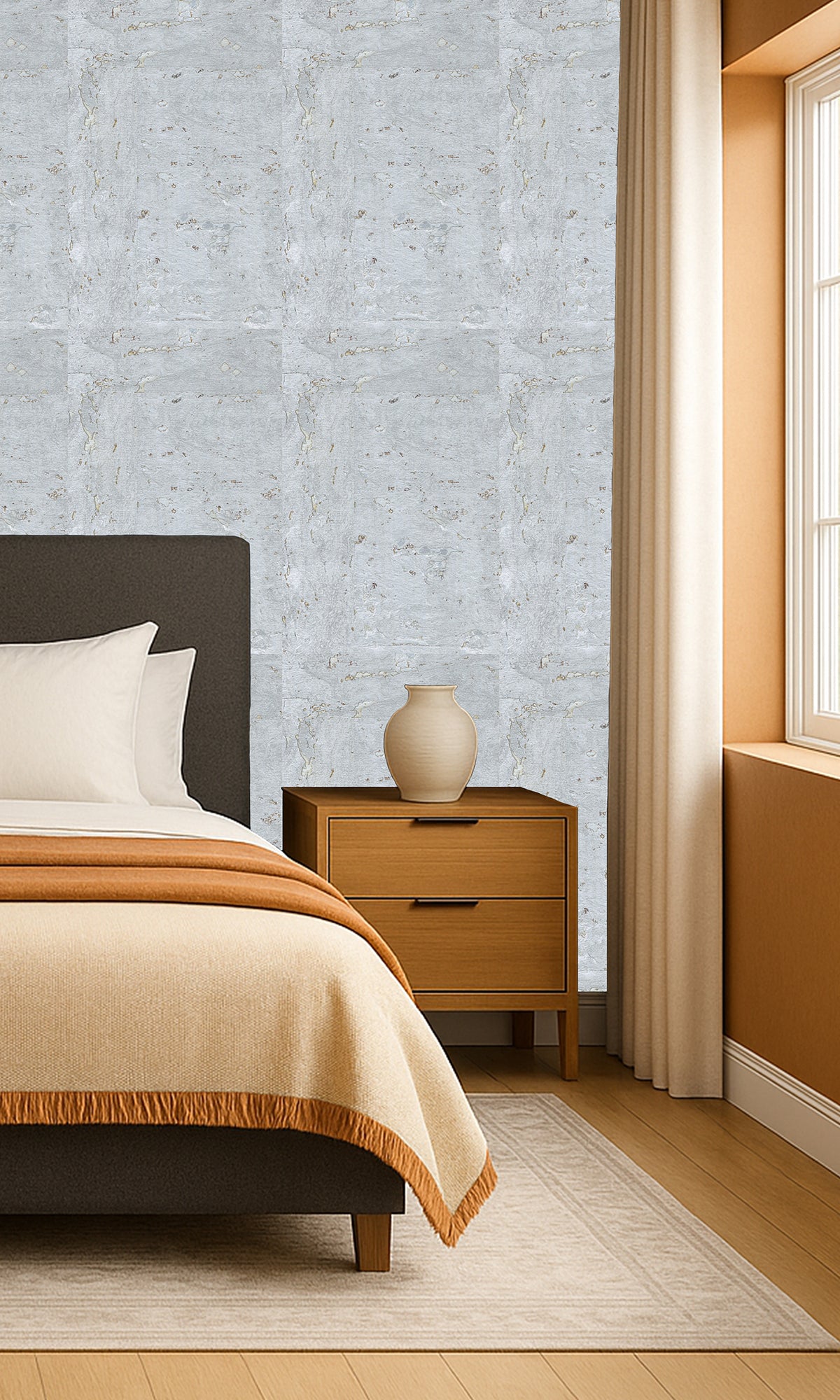 The design of this wallpaper subtly improves bedrooms, living spaces, studios, and more, making it ideal for wellness-focused settings, style-conscious homeowners, and interior decorators. It adds elegance and tranquility to any area with its calming aesthetic appeal and health-conscious design. Plain walls are transformed into visually arresting artwork by the abstract collaged pattern, which serves as a strong focal point. Made from natural, ethically sourced materials, it promotes sustainable living. Additionally, its chemical-free makeup and antibacterial qualities support better indoor air. The rich texture and gentle, neutral colors go well with a variety of interior design styles, from warm rustic to sleek modern.