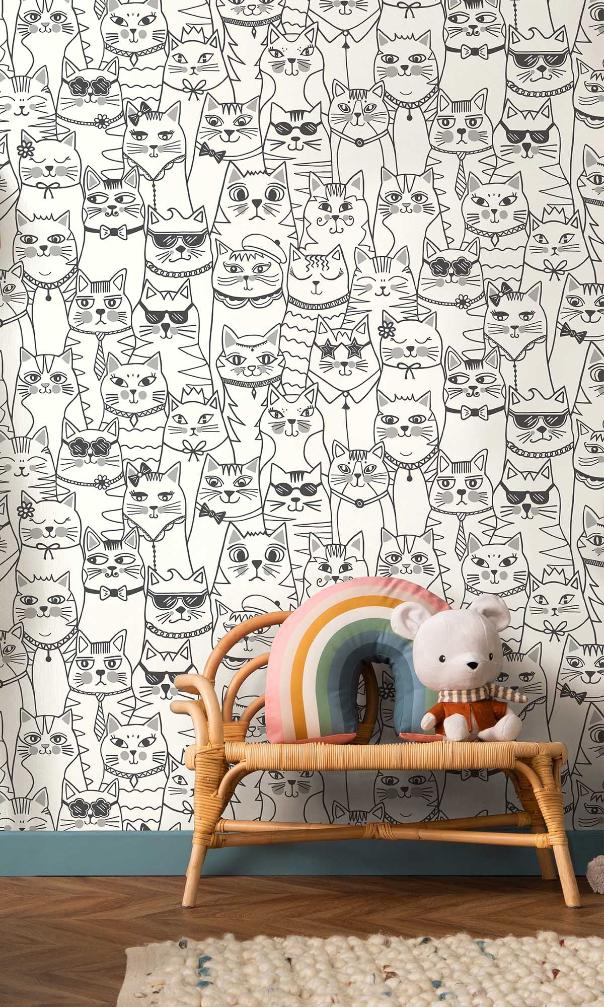 There is so much more to this Adventure Awaits Colour-me Cats Wallpaper than just a wall covering. It's similar to telling your children, ""Unleash your inner artist!"" and handing them a blank canvas. It's a dream realized! Children can draw, paint, and create their own art gallery on the walls. Much more thrilling than merely gazing at dull paint.