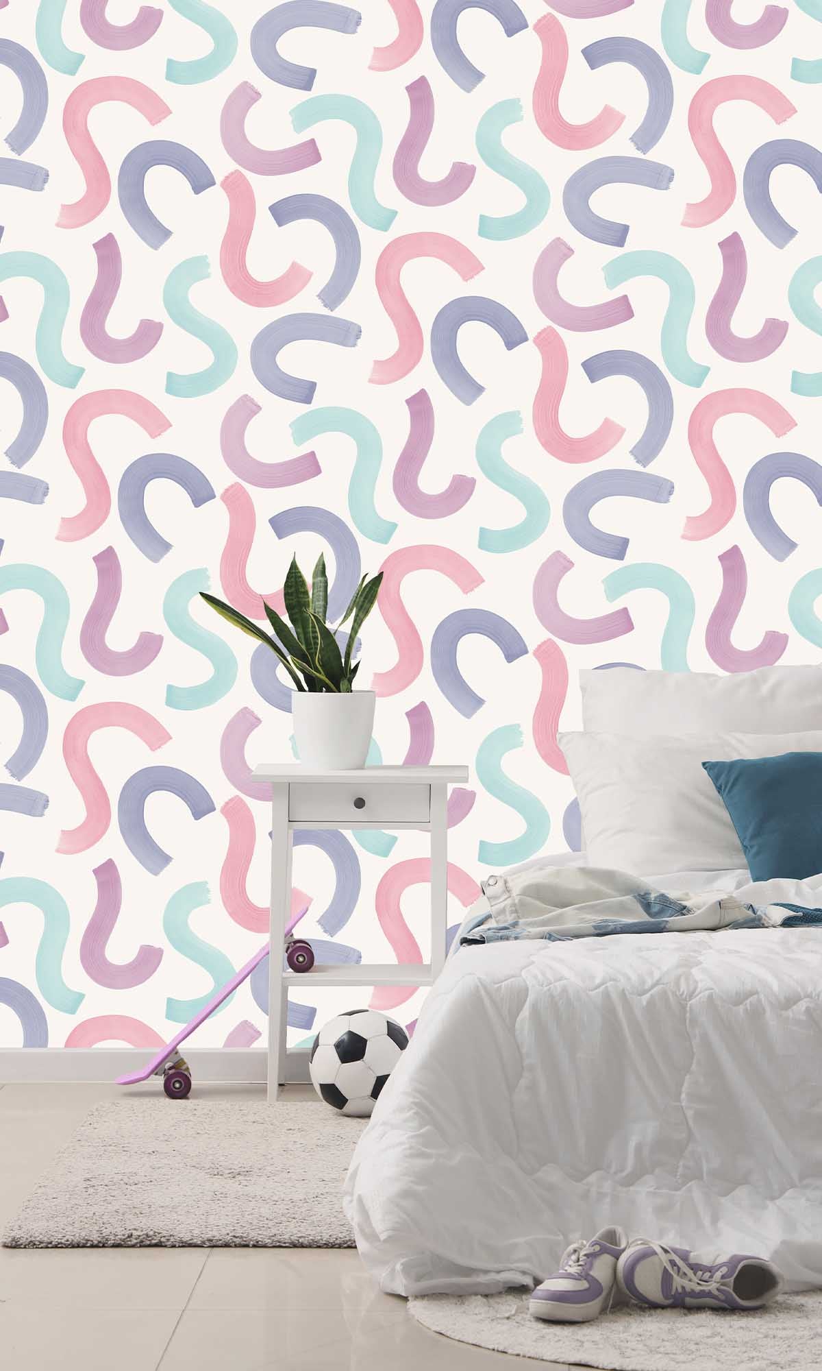 Let's face it, kids' rooms may easily become boring.  So why not add some Adventure Awaits Curly Confetti Wallpaper to liven things up?  It is akin to hosting a celebration for your walls!  It looks like someone threw a bunch of confetti and decided to leave it just how it is, with large, strong brushstrokes scattered throughout.