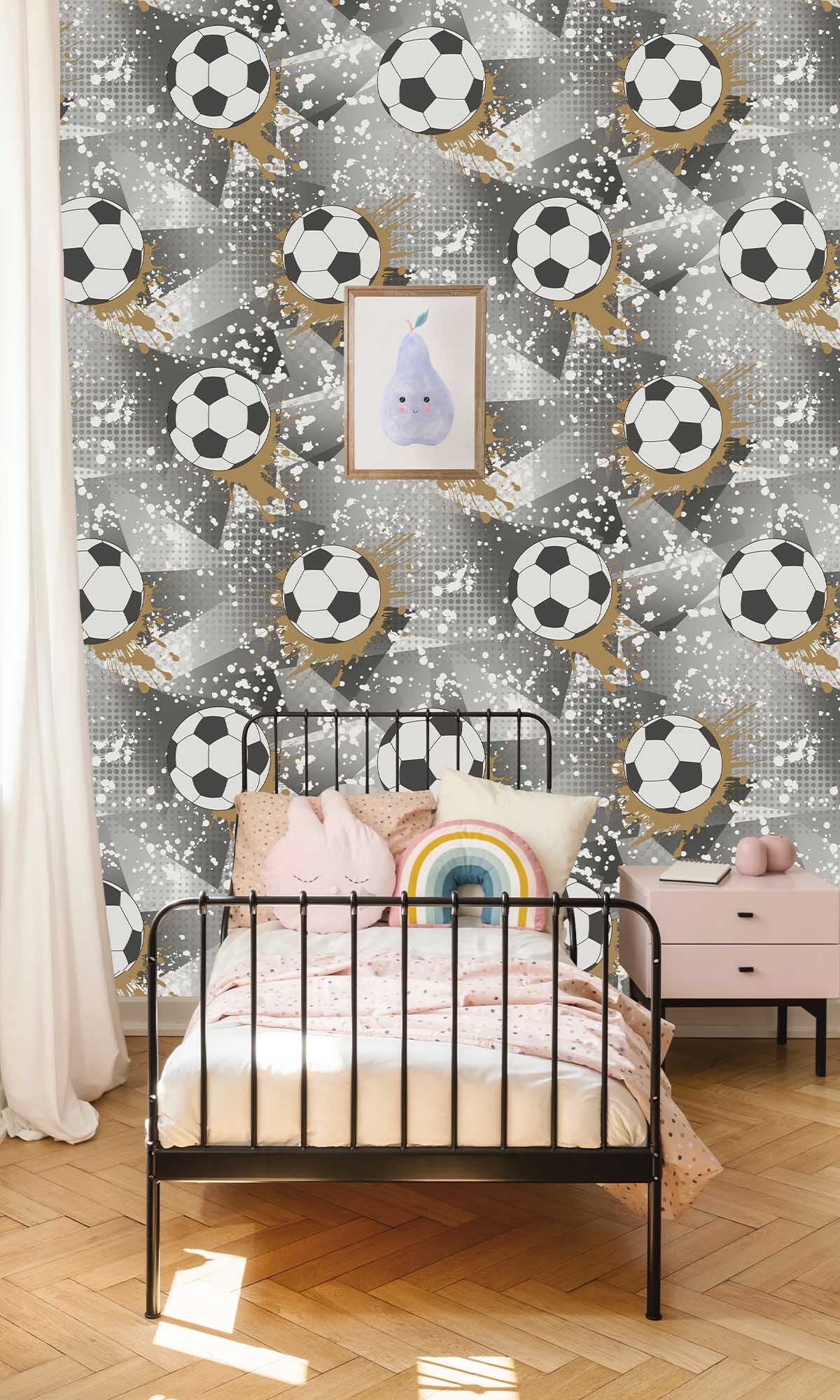 This Football Frenzy Wallpaper is unquestionably the best option if you want your child's room to accurately depict the thrill of a stadium on game day.  It's colorful, with footballs popping up all over crazy geometric forms, essentially saying, ""I love football!""  Bid farewell to boring walls.  When you hang this in a playroom or bedroom, you'll feel the energy right away and think you can practically hear the audience applauding.