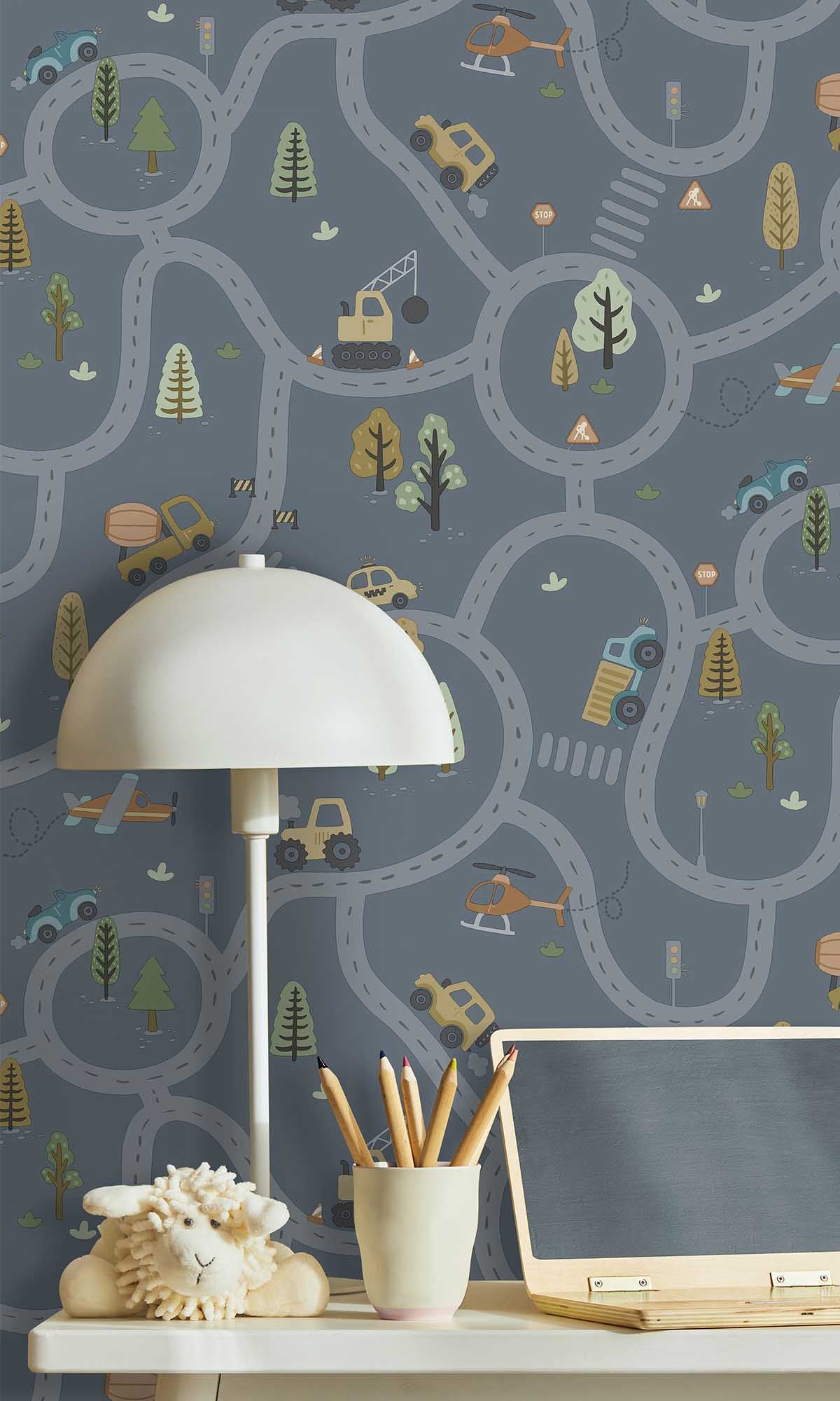 Are you prepared to turn your child's room into a little adventure area? You may have automobiles racing, trucks roaring, and airplanes soaring directly on the walls by simply adding the Adventure Awaits Roundabout Road wallpaper! It's like giving your kids their own runway and racetrack in their playroom or bedroom. Even if you're just sitting on the floor building with Legos, every day feels like a brand-new road trip.