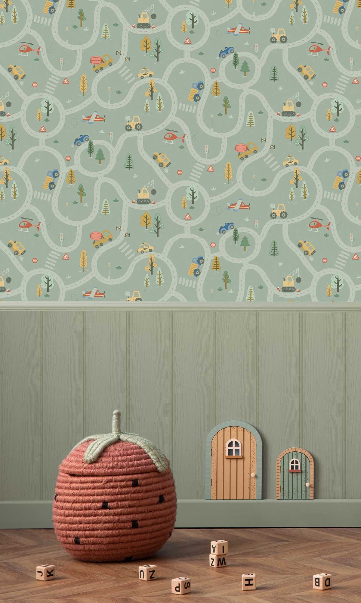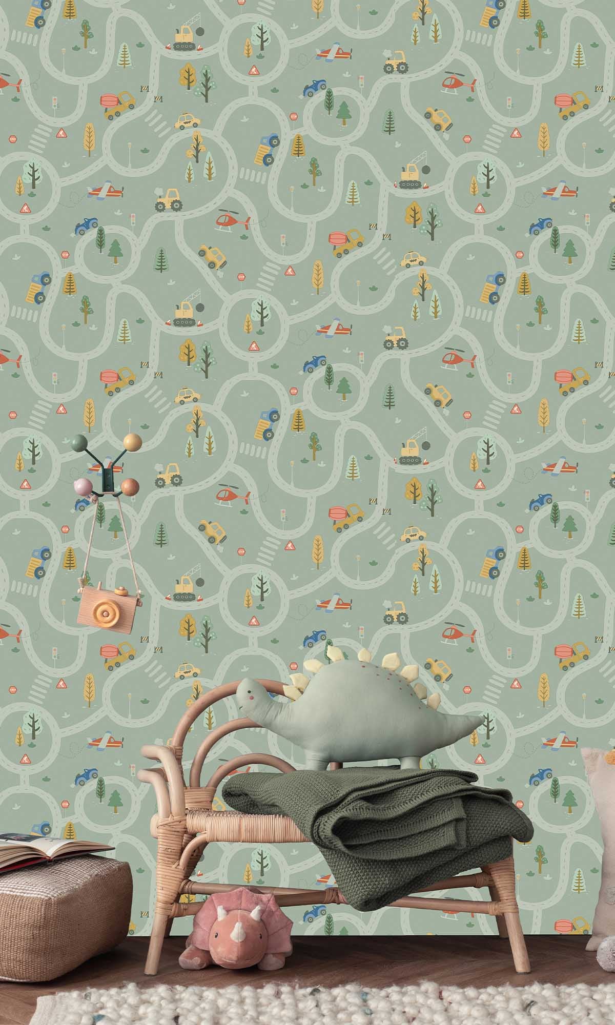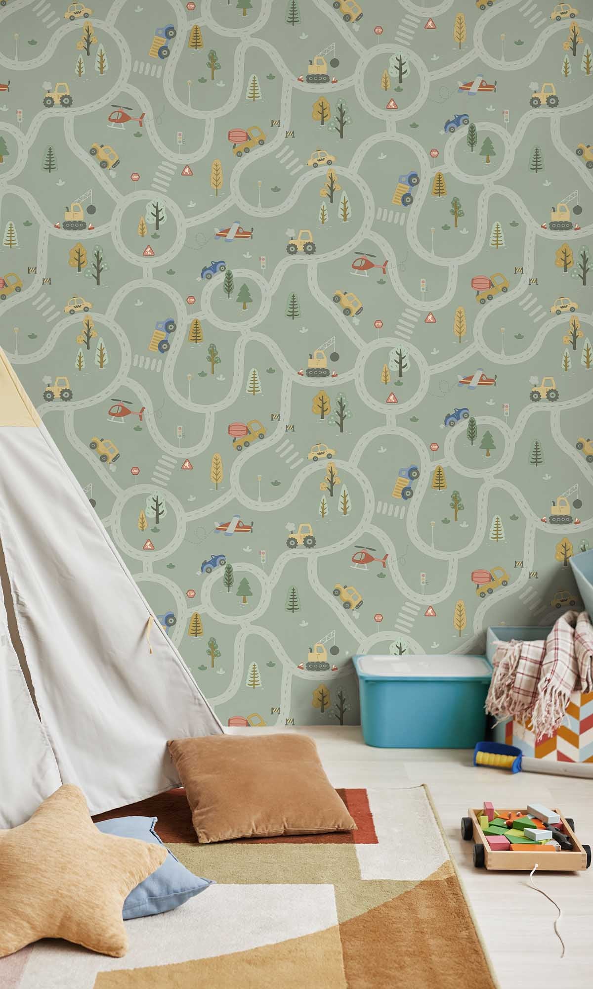 Are you prepared to turn your child's room into a little adventure area? You may have automobiles racing, trucks roaring, and airplanes soaring directly on the walls by simply adding the Adventure Awaits Roundabout Road wallpaper! It's like giving your kids their own runway and racetrack in their playroom or bedroom. Even if you're just sitting on the floor building with Legos, every day feels like a brand-new road trip.