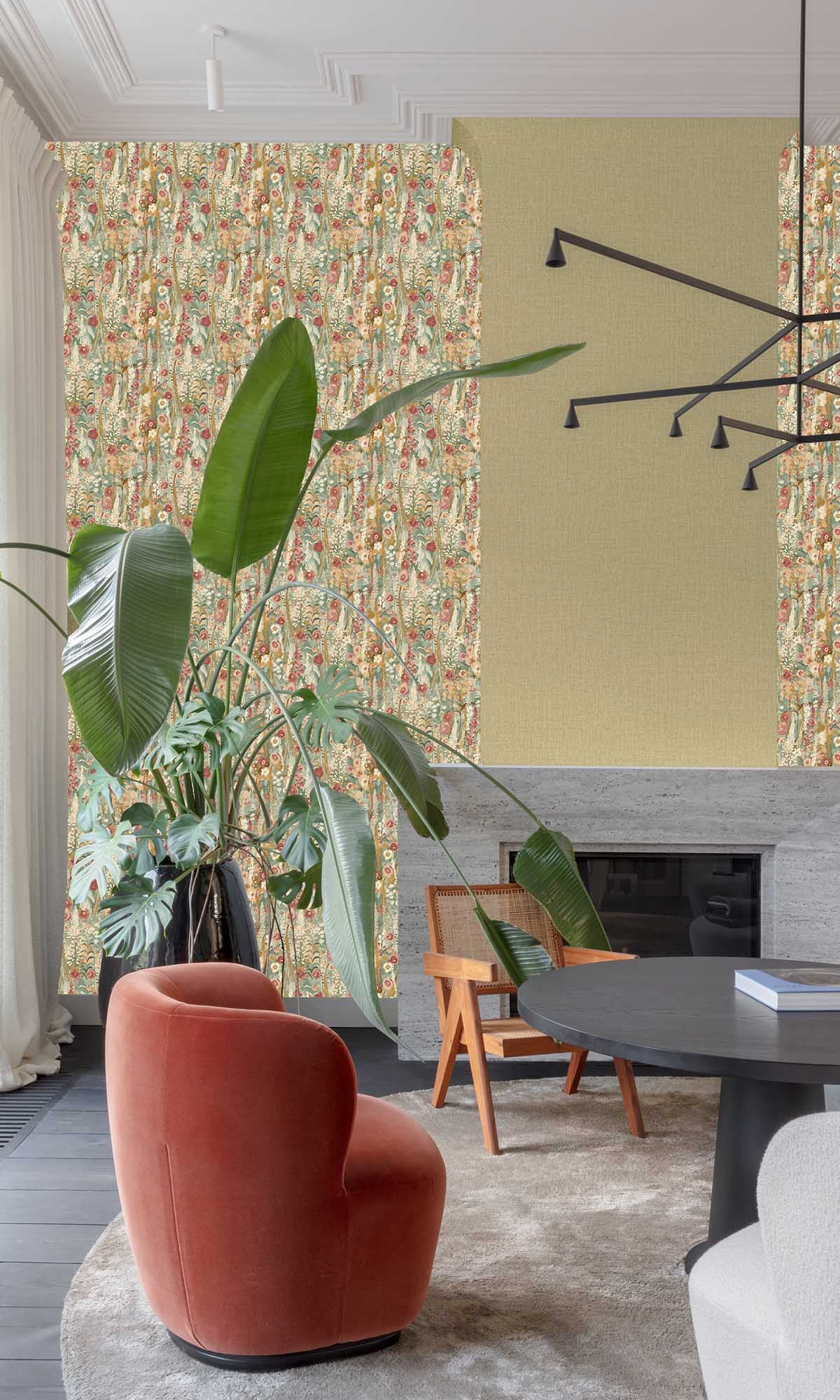 Our Inia Delphinium Forest Wallpaper is a gorgeous wall covering that captures the delicate appeal of nature in gentle, painterly detail, bringing the beauty of a blooming garden indoors. This design, which includes a watercolor representation of poppies, foxglove, and ferns, turns your room into a tranquil botanical haven full of color, texture, and creativity.