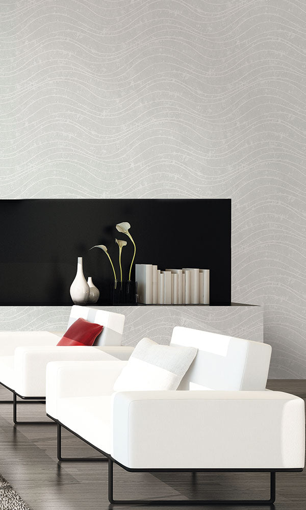 This fun striped design features an array of thin lines that create a horizontal wave throughout the pattern. Painted splatters sporadically coat the design, adding an interesting depth and artistic value. A subtle texture and canvas-like background create a level of sophistication, making this a great living room or statement wall wallpaper.